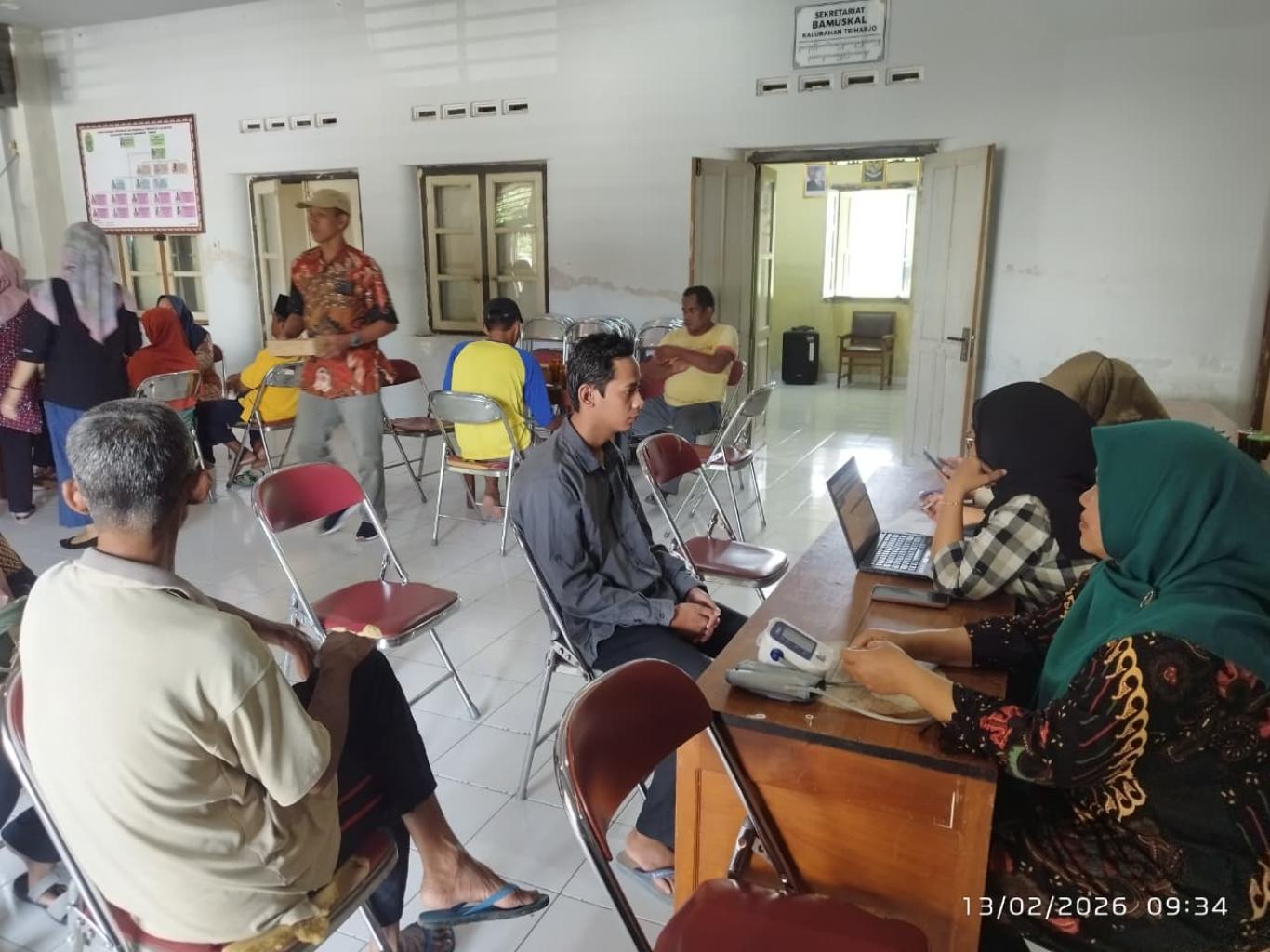 Kalurahan Triharjo_Jumat (13/02/2026) Pemerintah Kalurahan Triharjo melaksanakan kegiatan Layanan Posyandu Orang dengan Gangguan Jiwa (ODGJ). Kehadiran ODGJ dalam kegiatan ini menjadi salah satu upaya dari Pemerintah Kalurahan Triharjo bekerjasama dengan Puskesmas Pandak II untuk memberikan pelayanan kesehatan yang inklusif dan merata. Hadir dalam acara tersebut petugas Puskesmas Pandak II, TKSK Kapanewon Pandak, Babinsa, Bhabinkamtibmas, Lurah Triharjo, Pendamping Kalurahan Triharjo, Ketua TP PKK Kalurahan Triharjo, Bamuskal, Dukuh, dan Kader Padukuhan Tirto, Jaten, Nglarang, serta peserta penyandang disabilitas ODGJ. Dalam kegiatan tersebut, ODGJ mendapatkan pemeriksaan kesehatan rutin seperti pengecekan tekanan darah, penimbangan berat badan, serta edukasi kesehatan yang disesuaikan dengan kebutuhan mereka. Tim kesehatan bersama dengan kader Posyandu memberikan pendampingan penuh untuk memastikan layanan berjalan aman dan nyaman. Kegiatan Posyandu tersebut diharapkan mampu memberikan peningkatan akses pelayanan kesehatan jiwa yang lebih mudah kepada ODGJ di wilayah Kalurahan Triharjo sehingga kondisi kesehatan jiwa ODGJ dapat lebih stabil. |